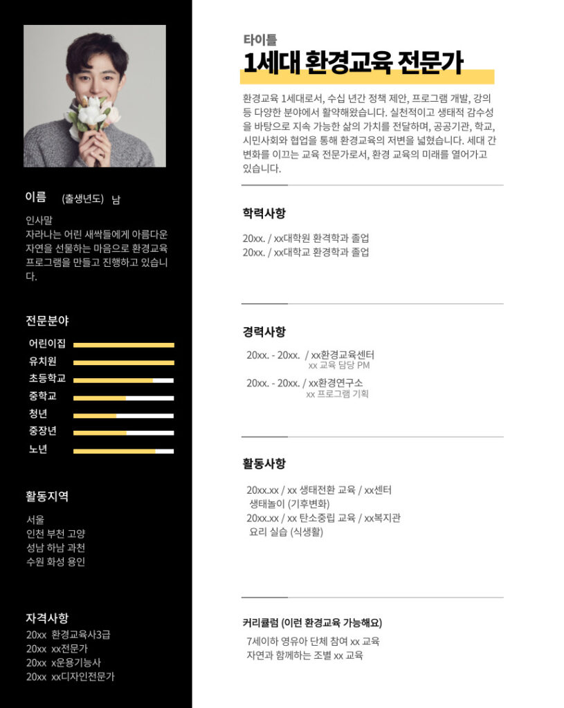 환경교육사 자격증은 기본으로 가지고 있네요. 거기다 강사님들마다 교육 특색에 맞는 다양한 자격증이 추가로 있어 어떤 교육에 특화되어 있는지 알 수 있고 믿음이 가요.